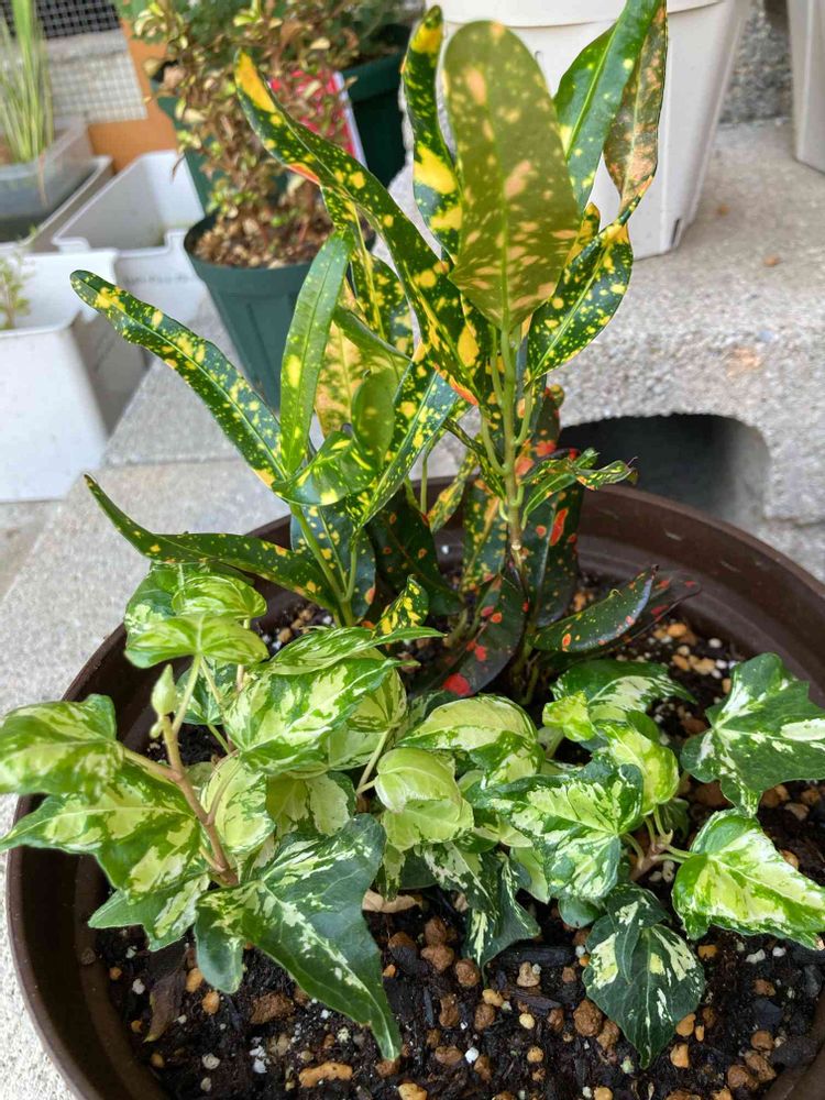 クロトン&ヘデラの斑入りコンビで寄せ植えしました🍃