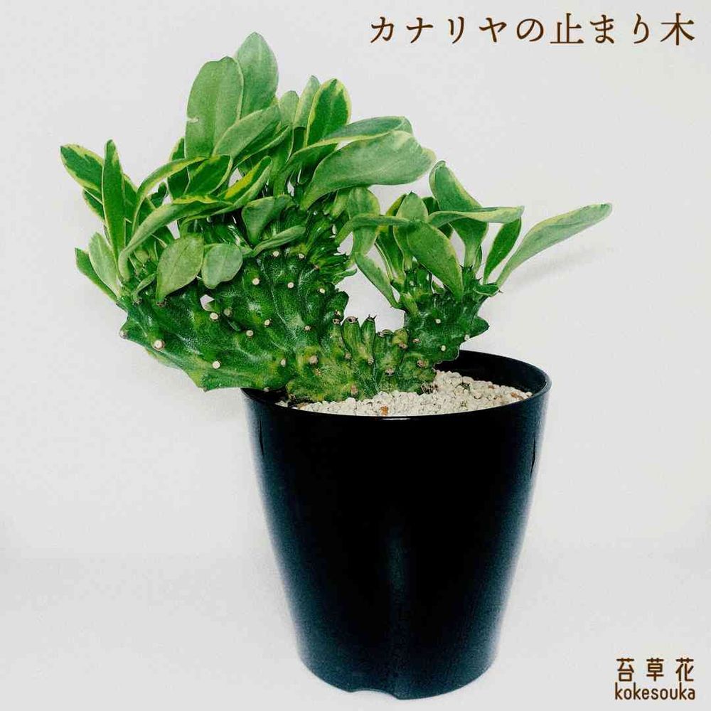 別名カナリヤの止まり木。美しい班入りの葉が特徴で乾燥に強く丈夫な植物。成長点が変異して横に広がる綴化個体。