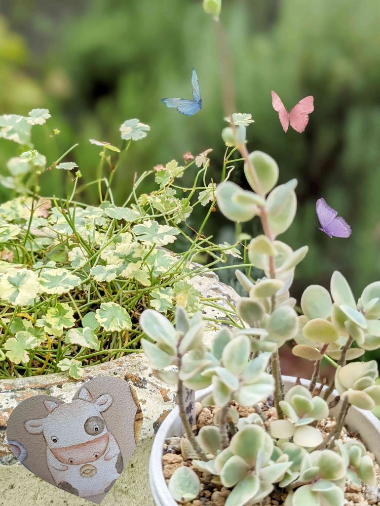 しじみ蝶錦🦋の丸っこい葉が可愛いよね〜(´ω`*)💗 わぁ〜牛🐮さんの絵まで