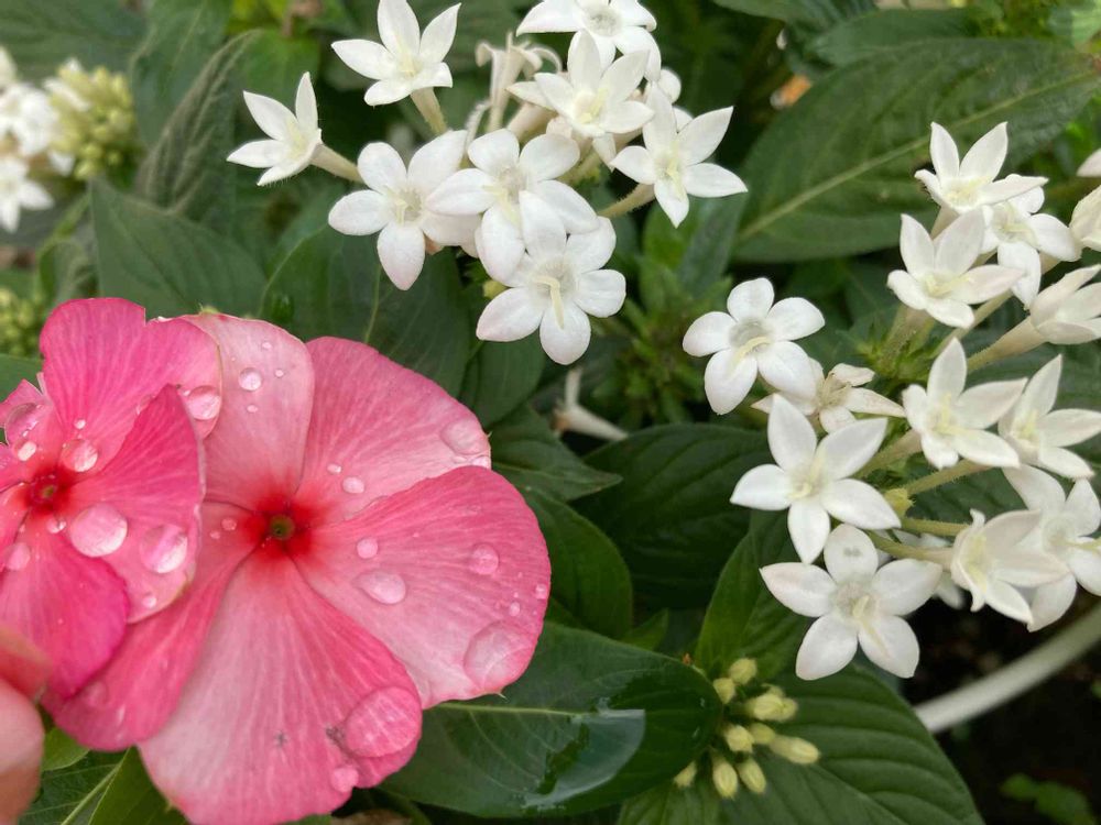 ゆうちいさんのテラス,白い花,ピンクの花の投稿画像
