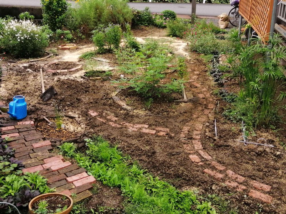 レンガの小径、いい感じになれば良いんだけど〜♡
