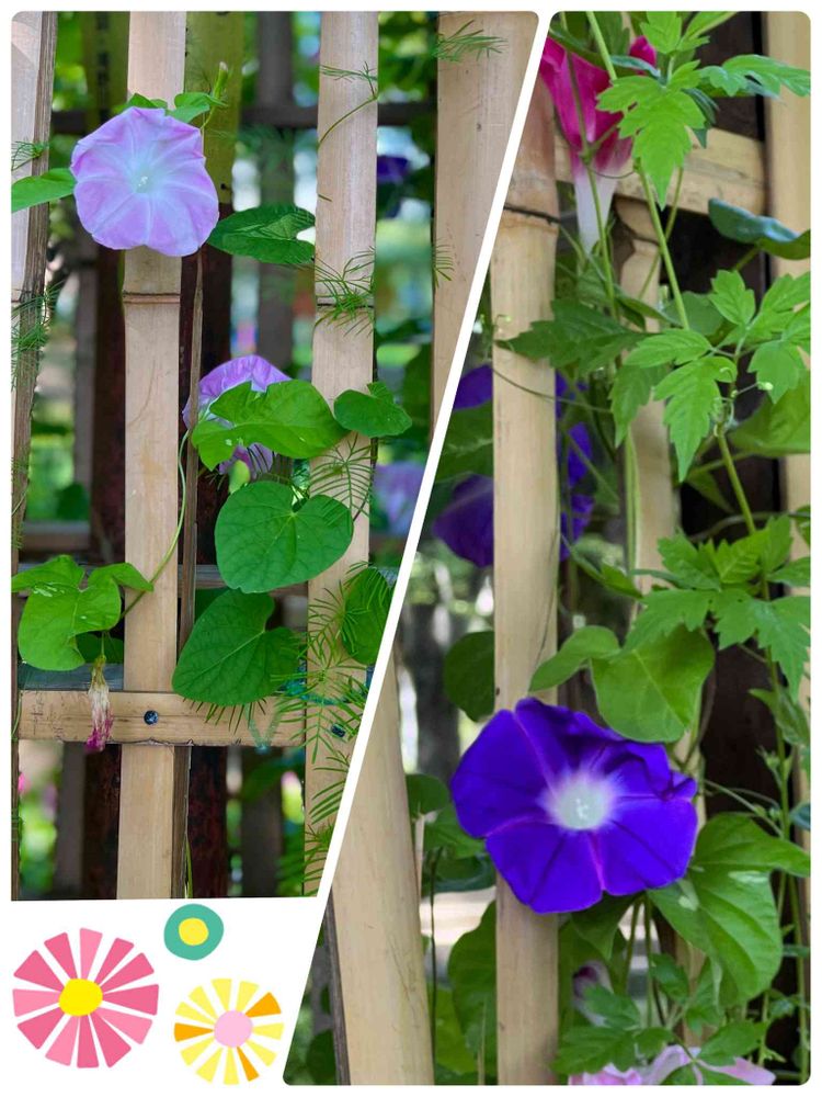 サークル長お手製の竹の柵にからんで、9月になってから美しい花を咲かせました。