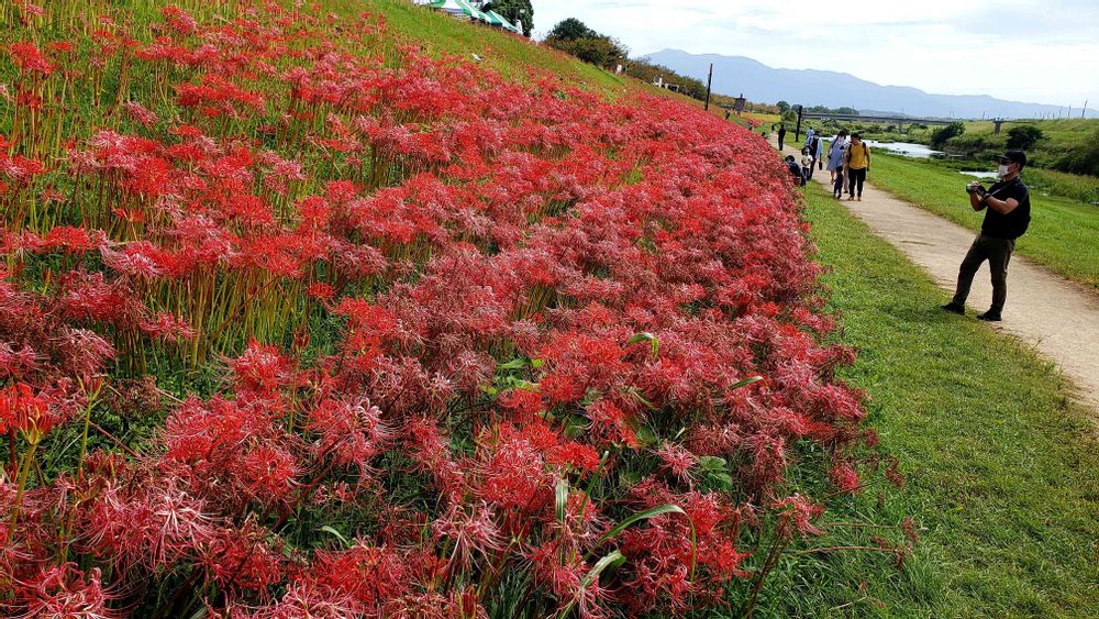 福岡県宮若市の犬鳴川公園で、24日と25日に開催されているというイベントに行って来ました。ヒガンバナは台風14号の影響で、一部がなぎ倒されていましたが、それなりにキレイ💓でした🎶