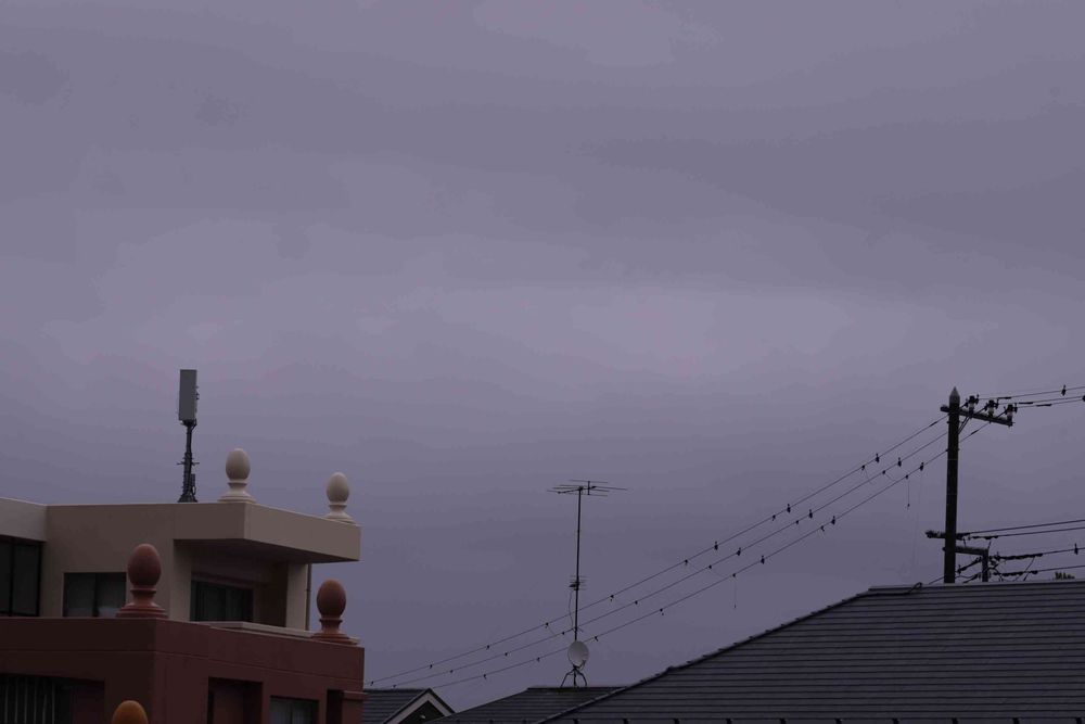 今日(24日)、望遠レンズを使って撮影した、朝焼けの雨空の写真🤳です。