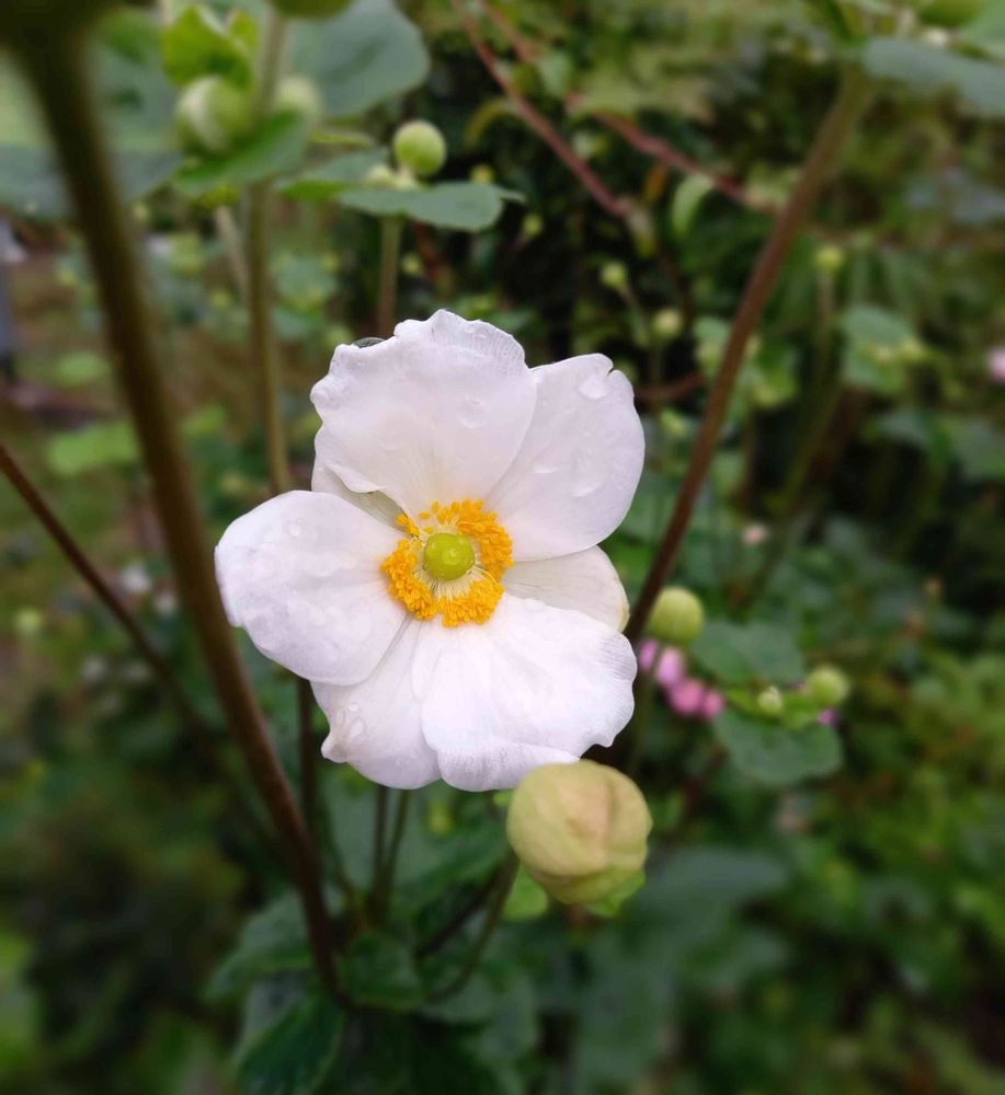 シュウメイギク雨に打たれて一層白さが際立っていますね🤍