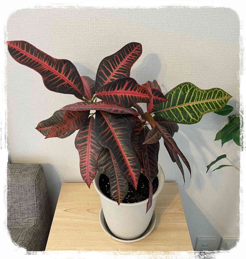 このクロトンはお嫁さんがお花屋さんで小さな苗を買って8年放置しているだけで育ってると言っていましたが…🪴