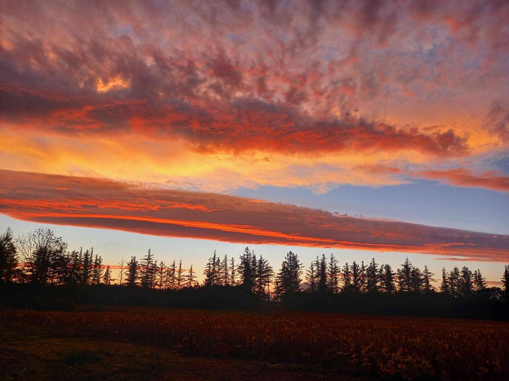 雲のオレンジが濃くて、明るい夕焼けですね!キレイ✨