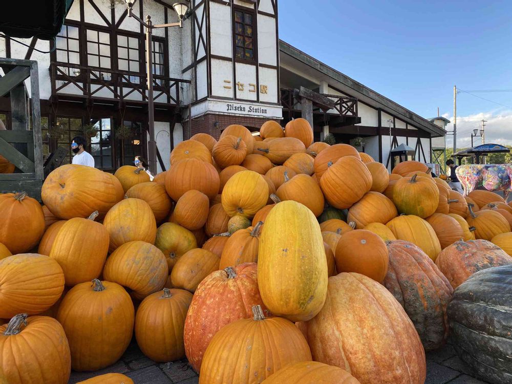今年のニセコ駅のハロウィン🎃ハロウィンカボチャモニュメントです。