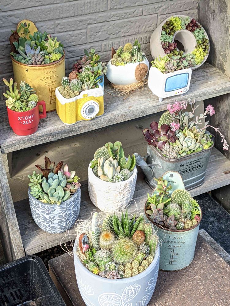 カメラやテレビの鉢も寄せ植えも可愛い♥️