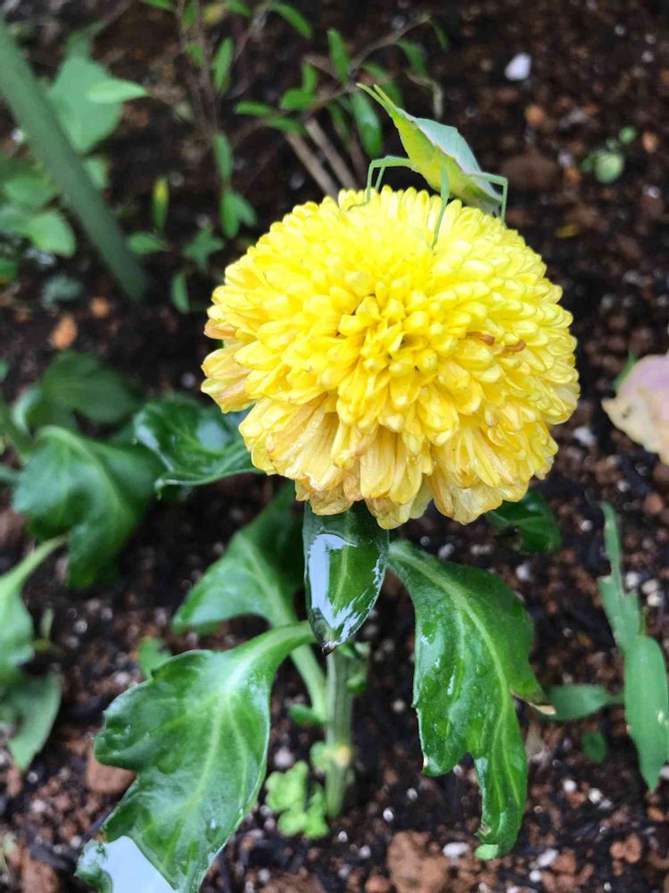 9.9の菊の節句に迎えていけて、まだイケそうな切花のピンポンマム🟡小さな花壇に挿してみた‼︎チャレンジ‼︎