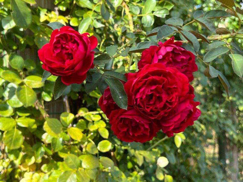 深紅のバラ🌹、周りの緑と相まって一際目だっていますね🎶