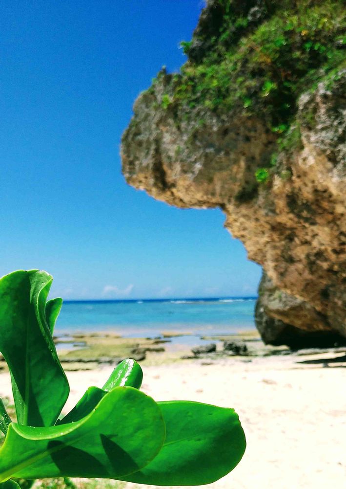 沖縄は波で浸食されてキノコみたいな岩が多いですよー💓💓このくぼみの木陰は涼しく、いつまでいられるよー!(o^^o)