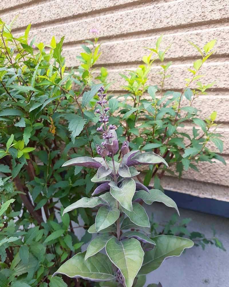 花壇に、カラーリーフが欲しくてセイヨウニンジンボクのプルプレアを植えました。
