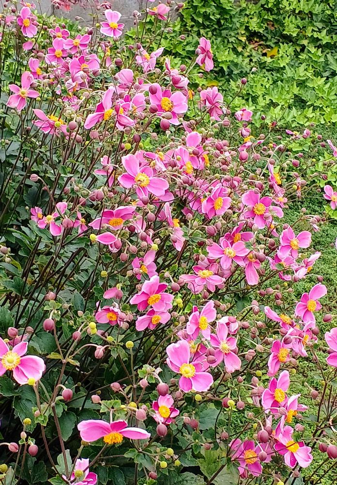 私も去年濃いのと薄いのと、2種類のピンク色のシュウメイギクを植えたのですが、今我が家で咲いてるのは白ばかりです😅