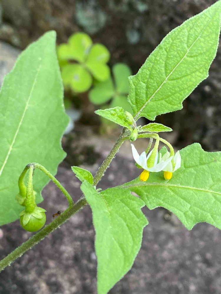 茎から出る 花や実がつく枝を《果軸》と言うのだけど、その果軸の頂点 一点から 放射状に 花や実が付けば【アメリカイヌホオズキ】。
