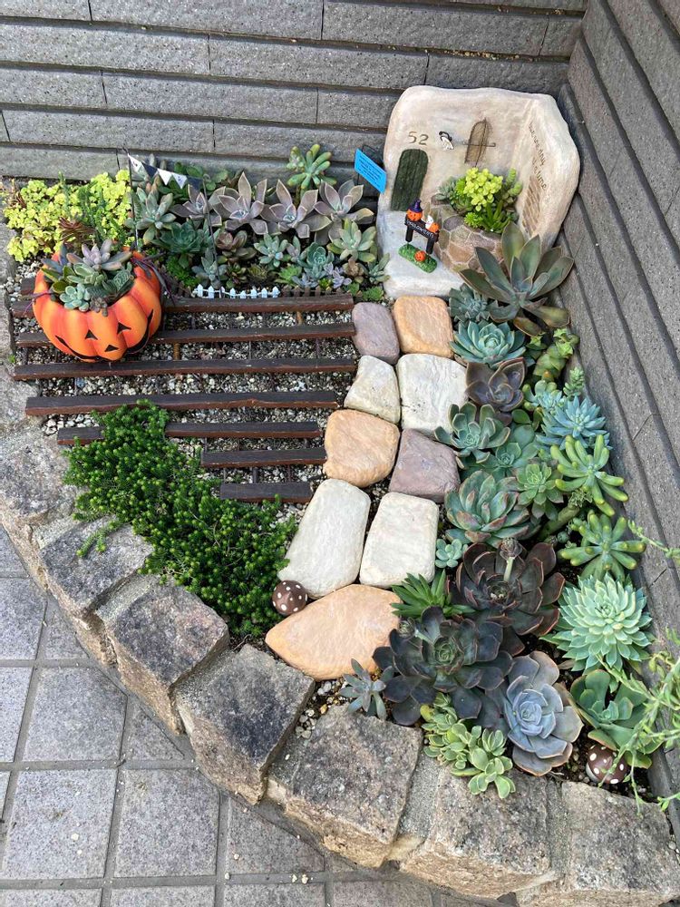 夏くらいから多肉ガーデンを作りたいと思いながら全然進まずだった時たかこさんとダンピエラ さんに相談しながら庭づくりを始めました でも肝心な多肉が足りないそんな時にたかこ師匠がガーデン用の多肉をくださって完成しました😭大きい立派なのは師匠からです