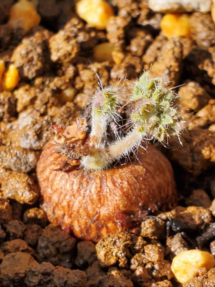 こんな小さな塊根から、沢山の花が咲き種子が採れたので、「もう目覚めないのでは?」と、心配していたら…