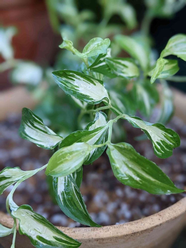 エッジの効いた葉のラインとウェーブ状に入る斑入りが斬新💖