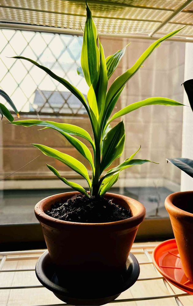 同じくホームセンターで購入した、ドラセナ・サンデリアーナです♪西日に当たって綺麗なライムカラーで撮影出来て、何だか嬉しい😊