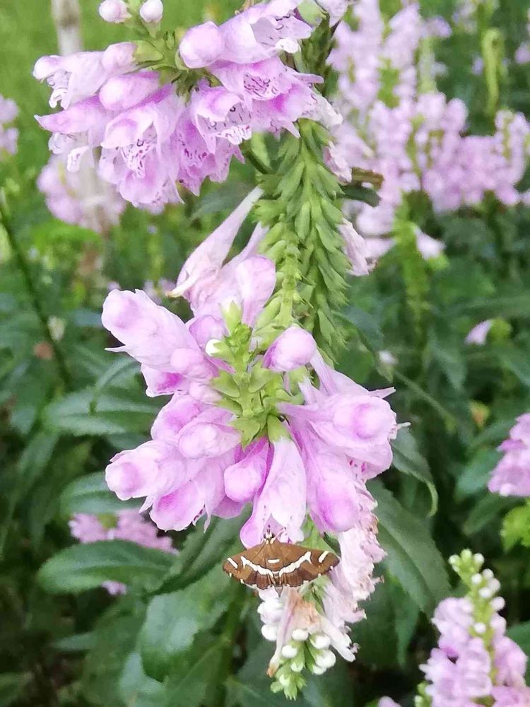 ハナトラノオの花に止まったシロオビノメイガ(🦋) 2022-09-25