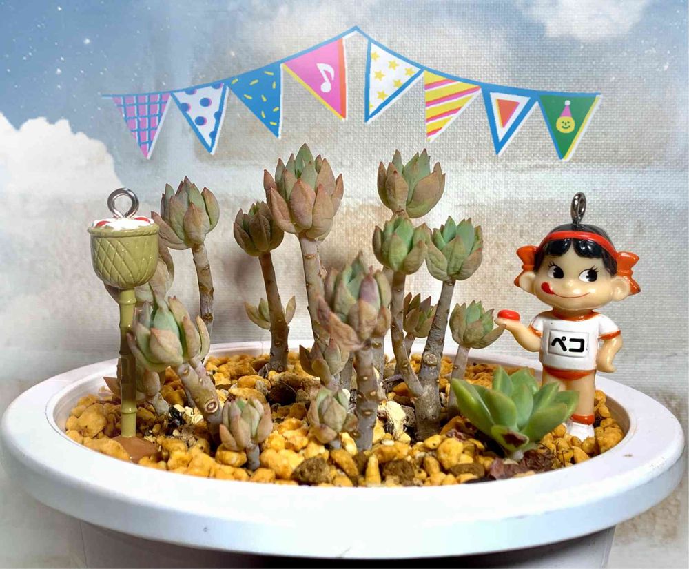 このペコちゃん秋に使いたいと思ってたんですが、私いつもストーリーを考えちゃうのでどの植物と合わせようか思いつかなくて🤔