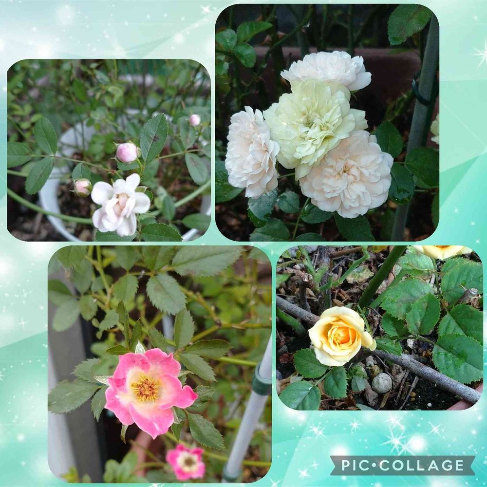 グリーンアイス🌹が、ホンノリとピンクになりミサキ🌹にも蕾が(⑅•ᴗ•⑅) 黄色はお名前解らない🤭