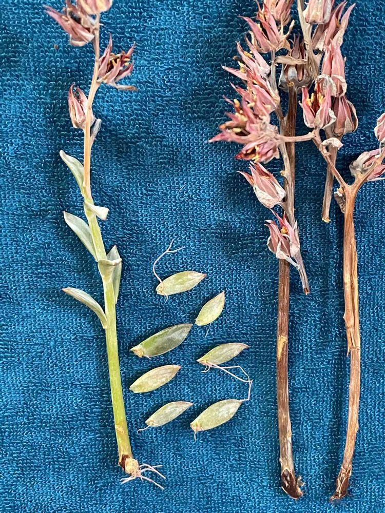 🌱多肉の花穂三本ガラスのコップに少し水を入れ長い事放置 多分二か月ぐらい あとはカラッカラに窓際のシルエットになっていました