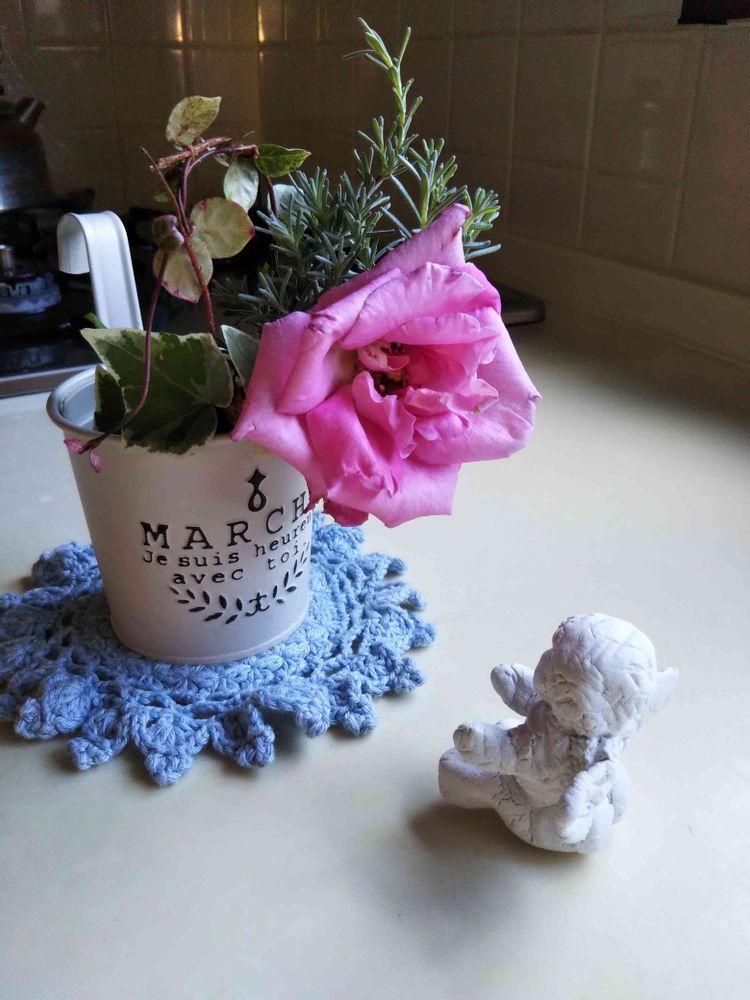 美しい薔薇さんと なんと紙粘土で作られたエンジェルちゃんなんですね〜!!!!