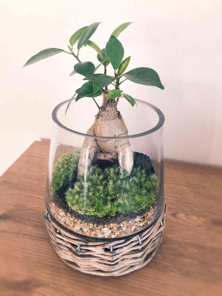 可愛いガラス花器があったのでガジュマルのオープンテラリウム、作ってみました♪☺︎