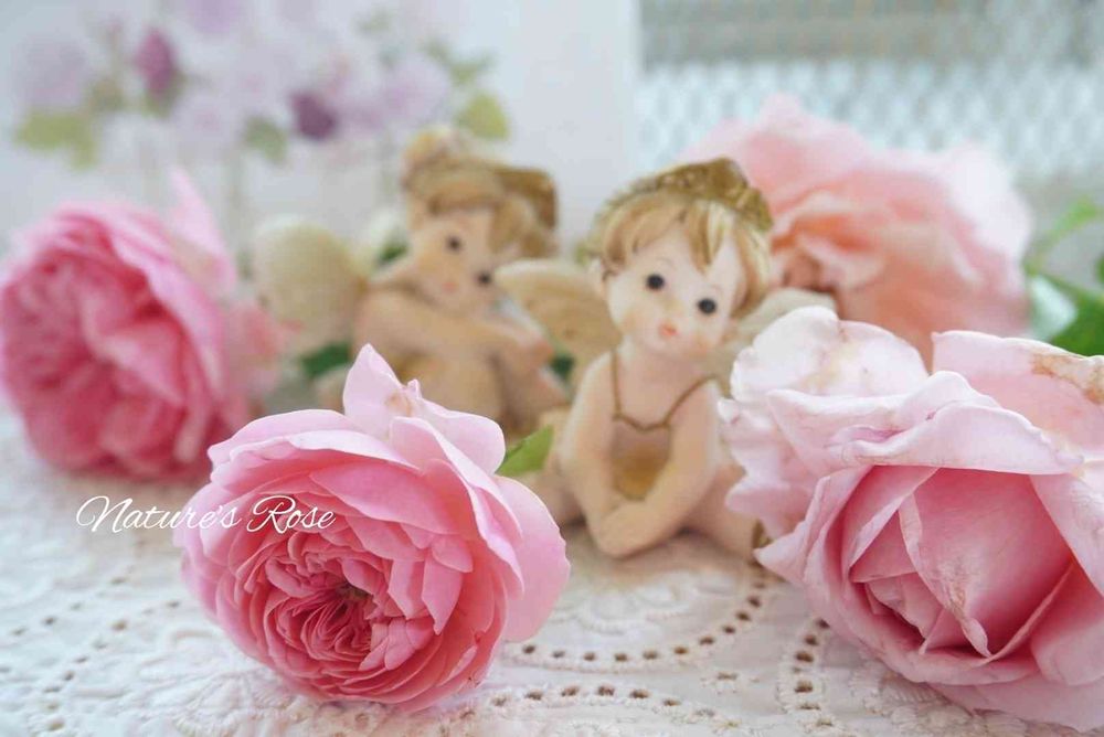 ピンクの薔薇🌹さんにピッタリの、かわいいエンジェルちゃんですね。
