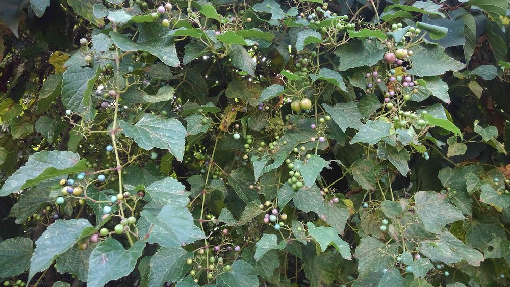 私の大好きな、野葡萄の大木(?)で注目している箇所が2箇所程あるのですが、だんだん色づいてきました🍇!