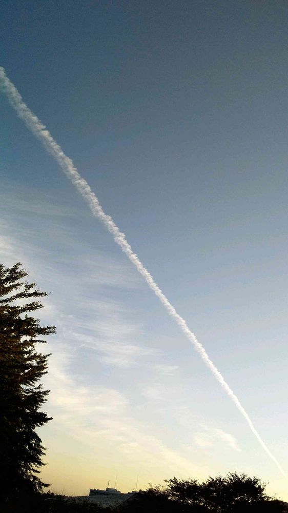 椿さんの帰り道,飛行機雲,朝焼けの投稿画像