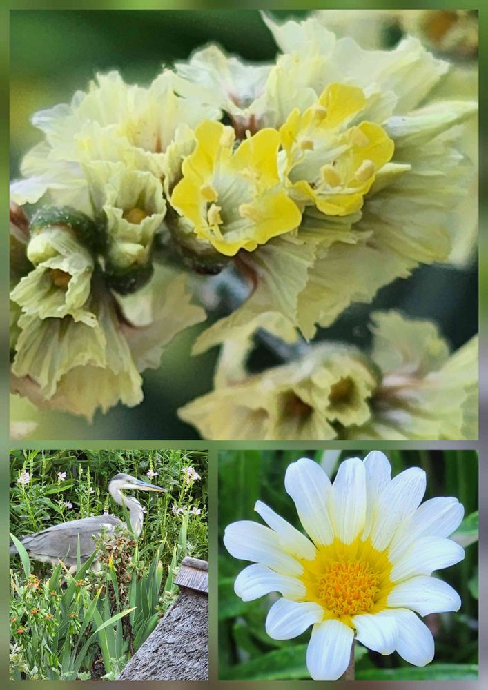 アオサギさんは なかよしの おはなをみながら