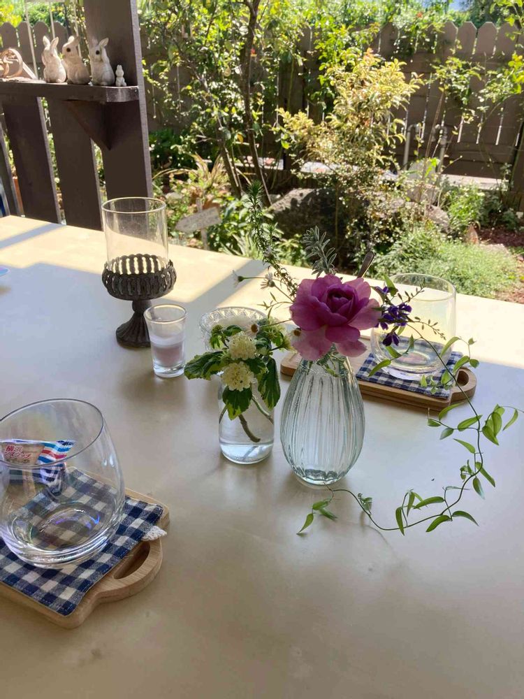 テーブルのお花はお庭から•*¨*•.¸¸♬︎