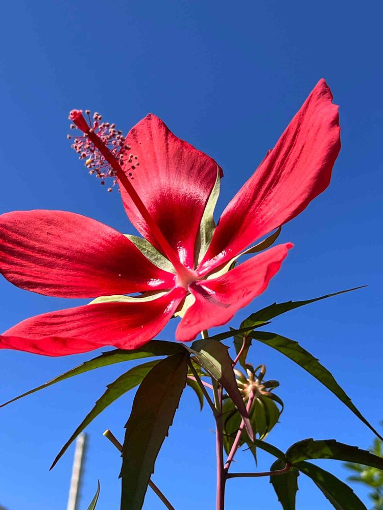 青い空に向かって羽ばたいて行く、そんな雰囲気を感じさせてくれるモミジアオイの華やぎ素敵だなぁ(^o^)✌️