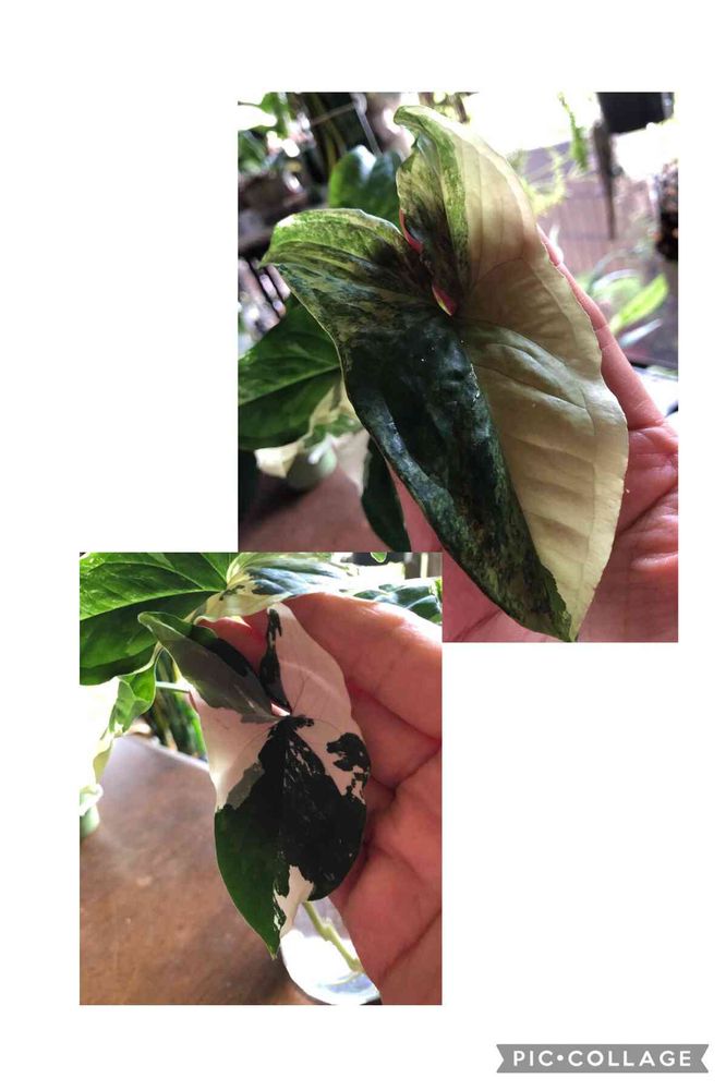 こんなマーブル斑入りのシンゴニウムもあるのね。🌱