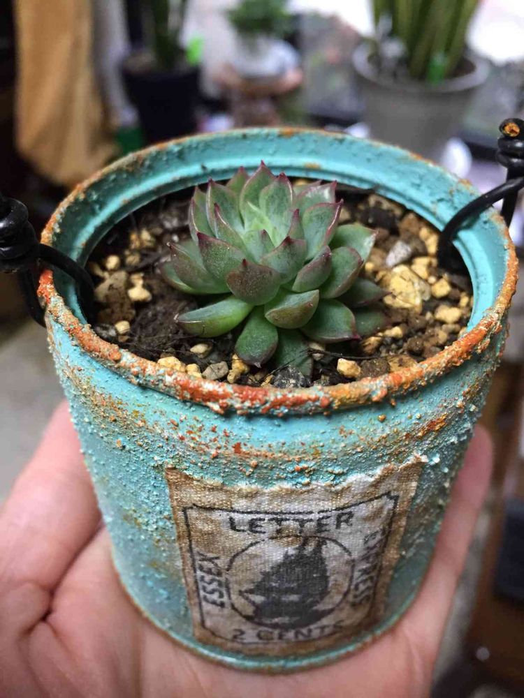 わぁ💕素敵なリメ缶に可愛い多肉ちゃんですねぇ❤️