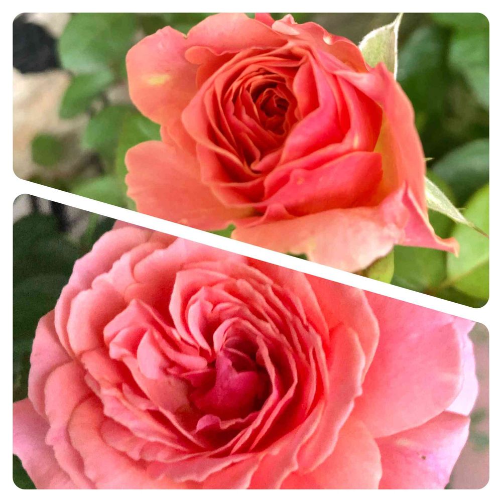 上は昨日の朝、下は夕方です🌹咲き始めは花色が濃くて咲き進むと少し淡い花色になります🤗咲き終わりは更に薄いピンク色です☺️