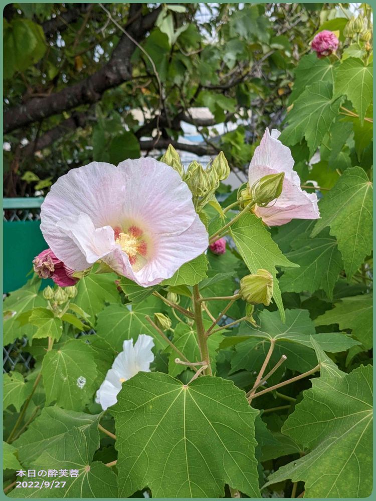 広い庭,ピンク色の花,フヨウの花の投稿画像