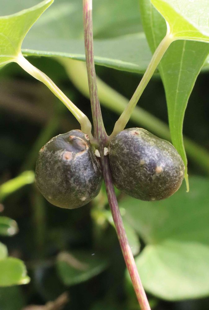 庭の生け垣にヤマノイモの蔓が絡まっていて、むかごが出来ています。