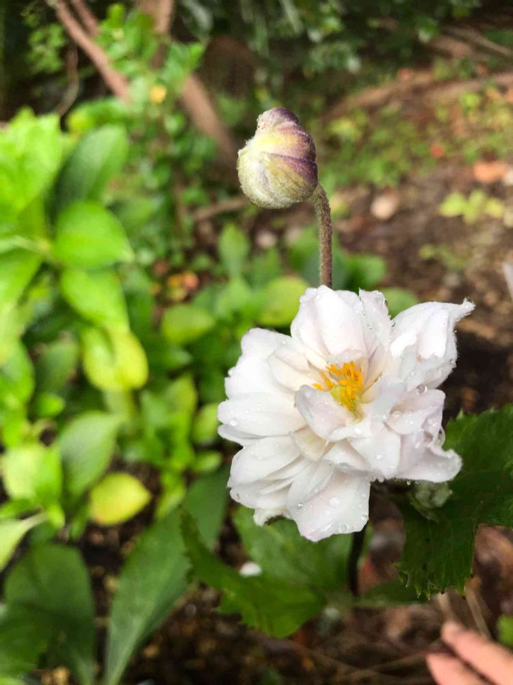 昔ながらの白い一重咲きのシュウメイギク大好きで、裏庭(畑)はシュウメイギクでいっぱいにするつもりなので、ピンクや八重咲きは要らないよって頑なに思ってたんですけど、、、