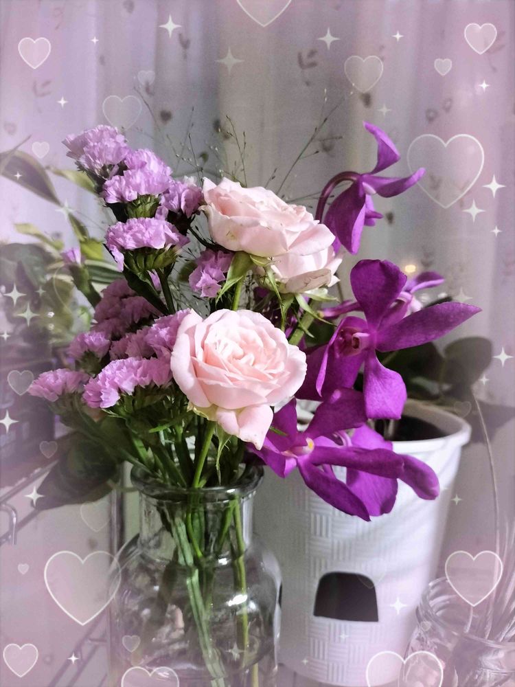 シャボン✿*゚さんの窓辺,スターチス,スプレーバラの投稿画像