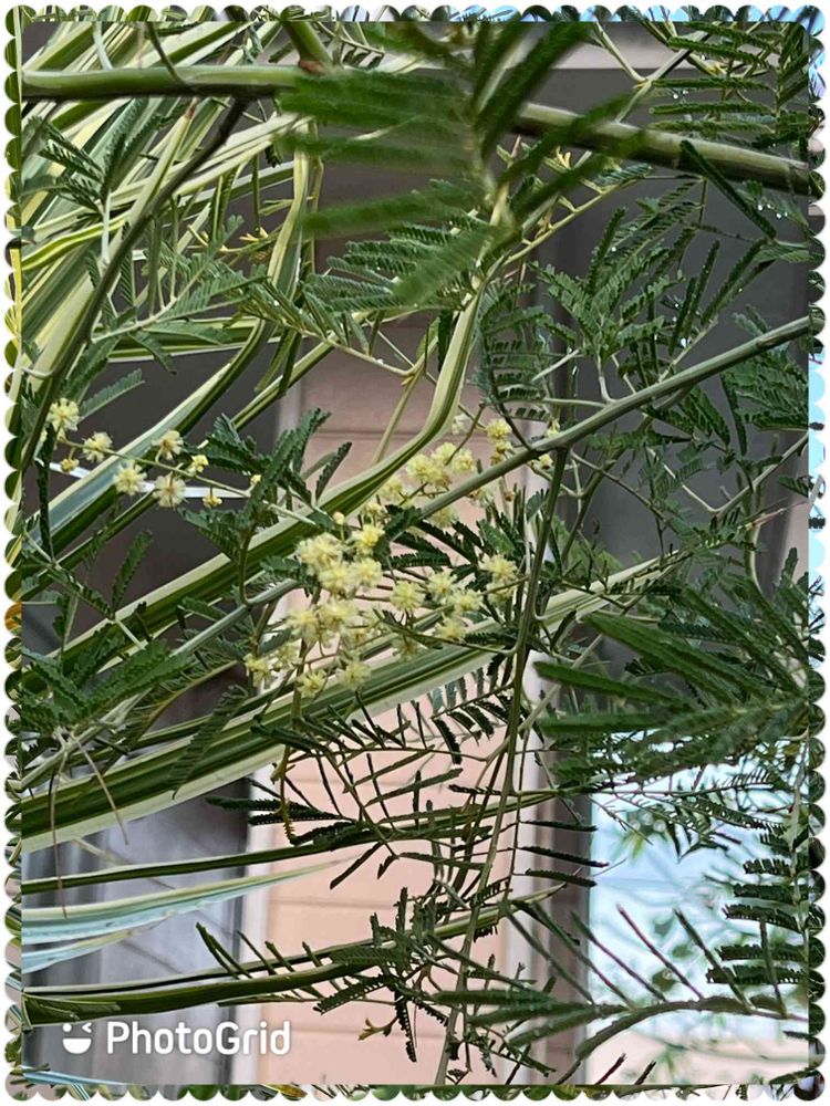 突然の大雨の後、ミモザの花が咲いてるのに気づいたのですが…