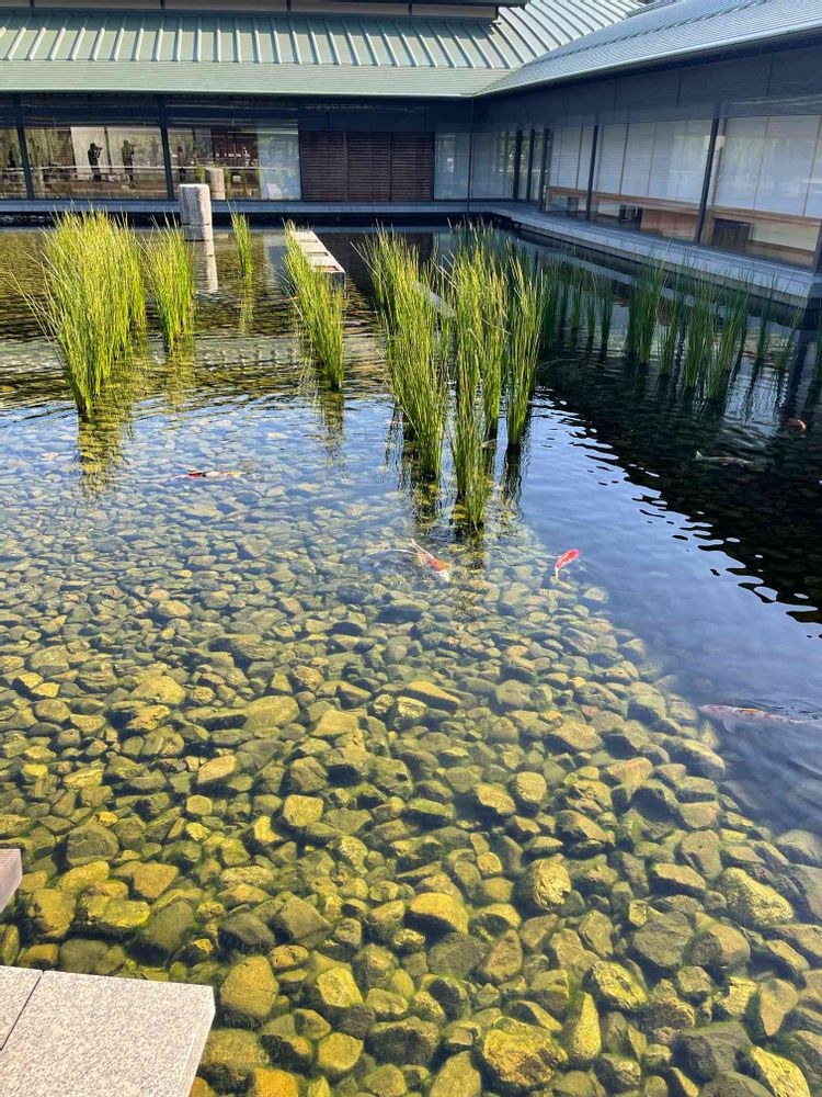 新潟県山古志村が被災した時の鯉を買い取ったそうです。浅いのですが、美しい鯉がこちらにも泳いできていました。