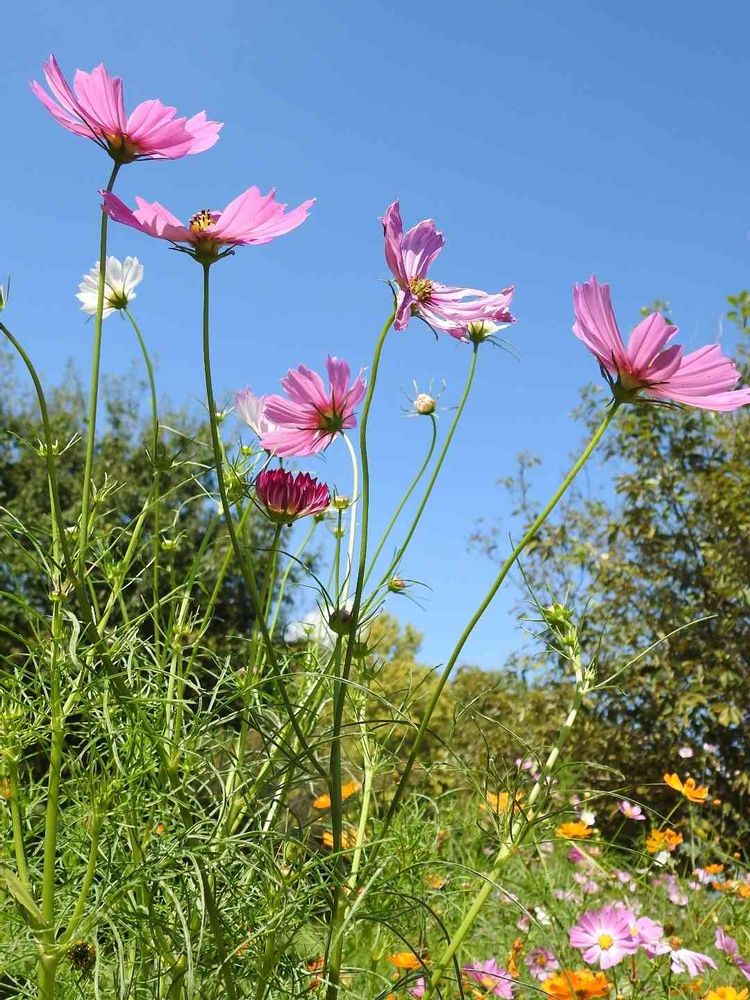 園路脇のボランティア花壇で青空に映えてイキイキと咲き誇る綺麗な花🌿☘️🍀