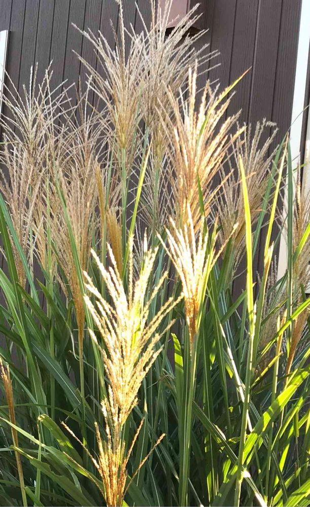 自宅の、ススキ🌾が、いつの間にか、咲いています。夕陽を受けて、輝いています。