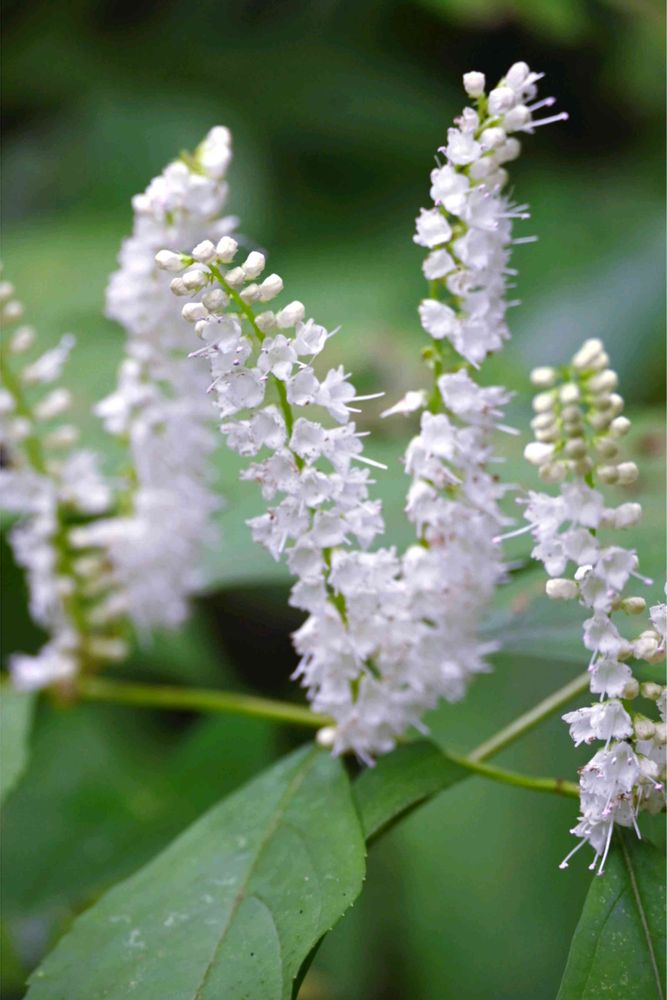 8月下旬から10月上旬に白い穂状の花を咲かせます。