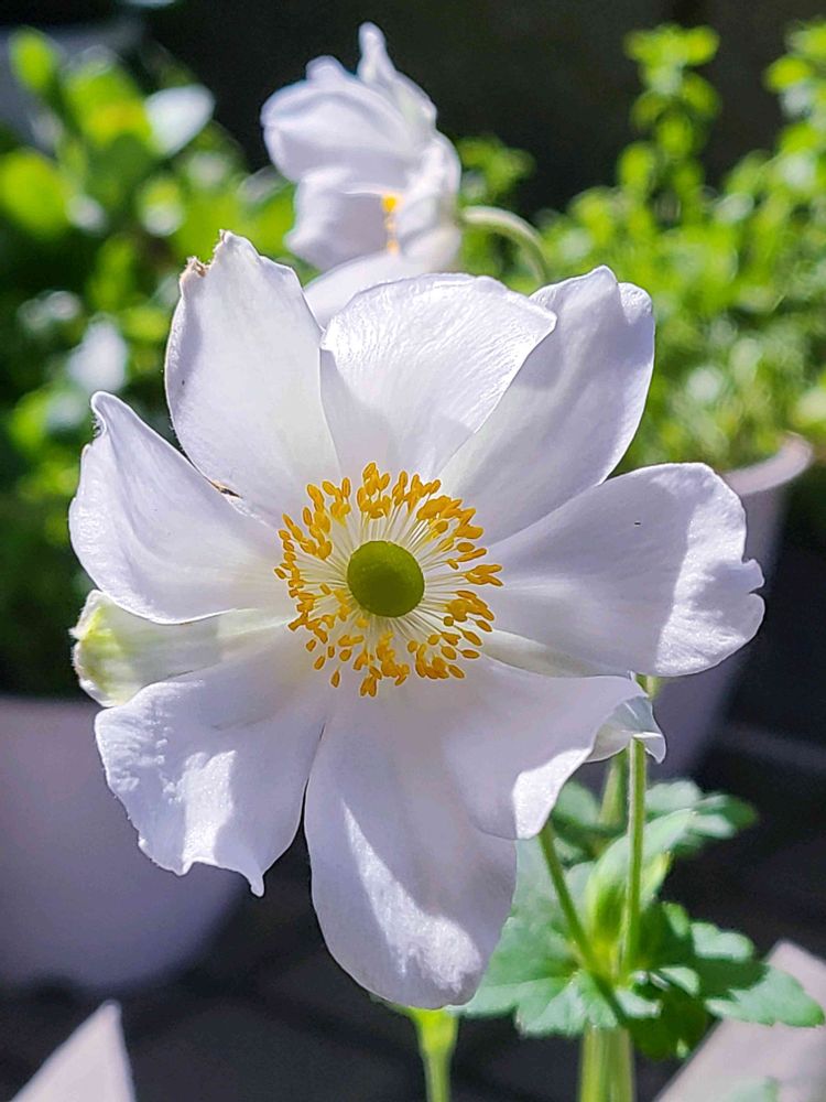 白い秋明菊、光を集めて、美しく輝いていますね✨💕😊