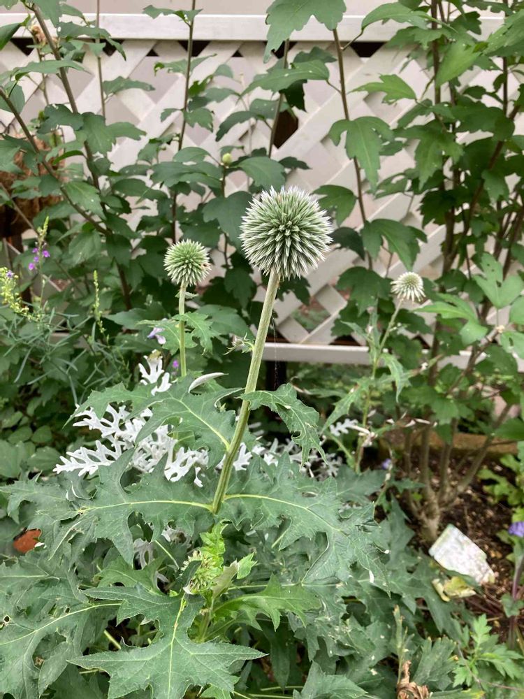 エキノプスの白も咲いてきました🌸日当たりなのか性質か、青い方が早かったです。