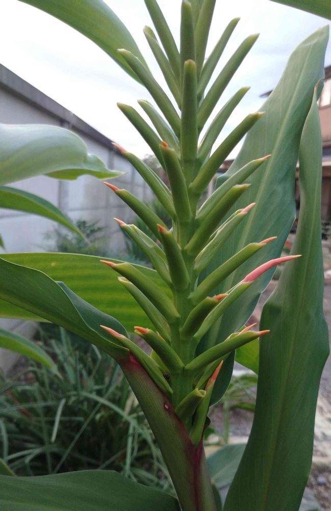 春頃に買って植えたジンジャーの球根に花芽がつきました😄